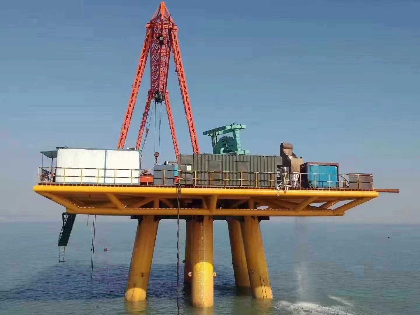 我國第一座3.4兆瓦潮流發(fā)電總成平臺施工場景
